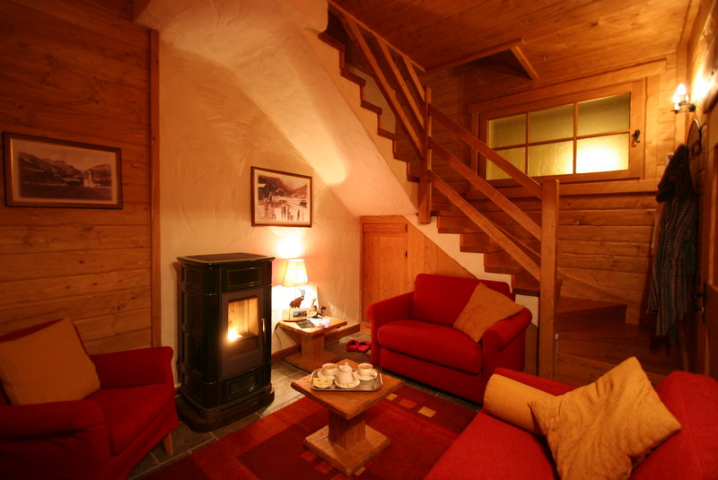 Sono costruiti interamente in legno e pietra, materiali naturali che emanano suggestioni uniche, sempre autentici ed estranei a mode e tendenze. Tutte le comodità di un grande hotel ma in un contesto assolutamente originale. Arredati in tipico stile di montagna le unità sono strutturate su tre piani. Al piano terra: soggiorno composto da un comodo divano letto, tv satellitare e lettore DVD, frigorifero e bollitore elettrico; un’ampia apertura, che ci spalanca la vista sui boschi e sul terrazzo attrezzato di tavolino e lettini; infine una graziosa camera da letto con bagno. Al primo piano un'ampia mansarda, con camera da letto e bagno; tutti i locali hanno aperture con vista su Livigno o sui boschi circostanti. Al piano inferiore un’intima tavernetta con divano, stufa e... accesso alla mini SPA privata... Sempre al piano inferiore, dalla taverna, brevi corridoi di servizio portano al garage riscaldato per il proprio posto auto e armadietto porta sci e scalda scarponi.