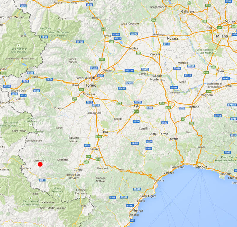 In una piccola borgata a 3 km dal centro di Marmora (CN), un paesino montano a 1.400 metri di altitudine, che conta solamente 70 abitanti residenti. L'appartamento è raggiungibile tramite strada comunale asfaltata.