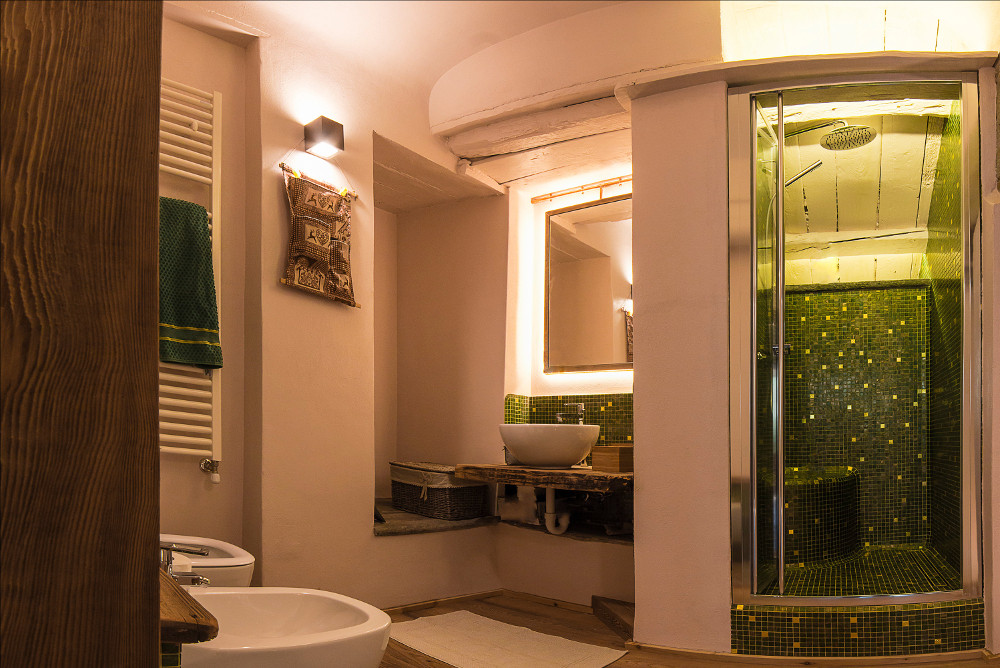 Un appartamento di 60 mq le cui pareti sono rivestite con il legno di Cirmolo: il profumo del Cirmolo è un calmante naturale, il quale trasmette un influsso positivo alla psiche umana. Ciò è confermato scientificamente, grazie agli studi effettuati dall’Università di Graz e dall’Istituto di diagnostica non invasiva del Joanneum Research di Weiz (Austria). Il legno di cirmolo influisce sul sistema nervoso vegetativo ed abbassa il battito cardiaco. Il risparmio complessivo dei battiti cardiaci è di circa 3.500 battiti al giorno, che corrisponde ad un’ora di durata di battito al giorno. Questa frequenza cardiaca più bassa porta nella fase di riposo ad un processo di rinvigorimento più veloce ed un migliore stato generale di salute.