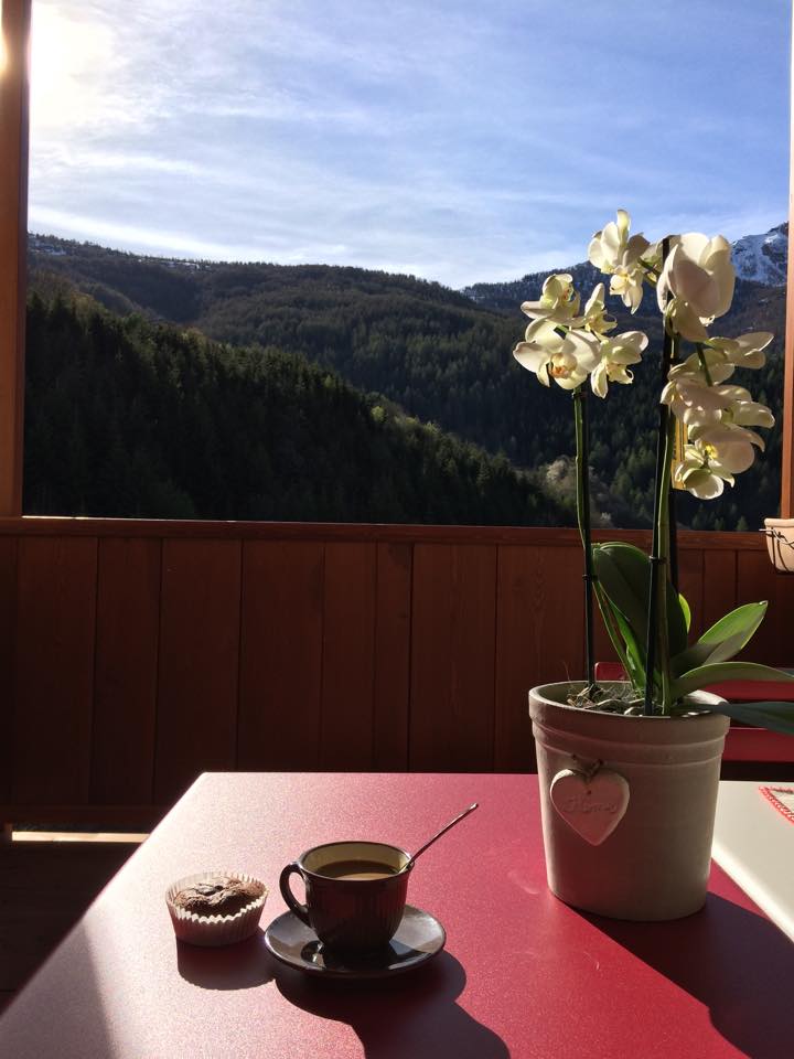 L'appartamento è inoltre dotato di terrazza panoramica, con sedie e sdraio. L'ideale per la colazione o semplicemente per rilassarsi ammirando le Alpi.